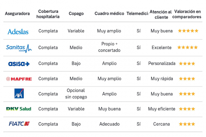 Ranking de los mejores seguros de salud en 2025 según los comparadores