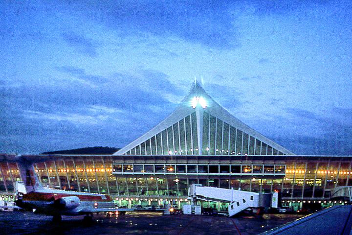 La nueva terminal fue construida por Santiago Calatrava y se inauguró en el año 2000, no exento de polémica por haber sufrido goteras durante 17 años.