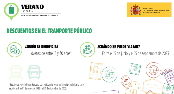 A partir de este jueves, los jóvenes de entre 18 y 30 años pueden disfrutar del descuento Verano Joven para el transporte terrestre promovido por el Ministerio de Transportes, Movilidad y Agenda Urbana. Los billetes de tren y autobús, que contarán con hasta un 90% de descuento, ya están a la venta, aunque solo podrán utilizarse para los trayectos entre el 15 de junio y el 15 de septiembre.
