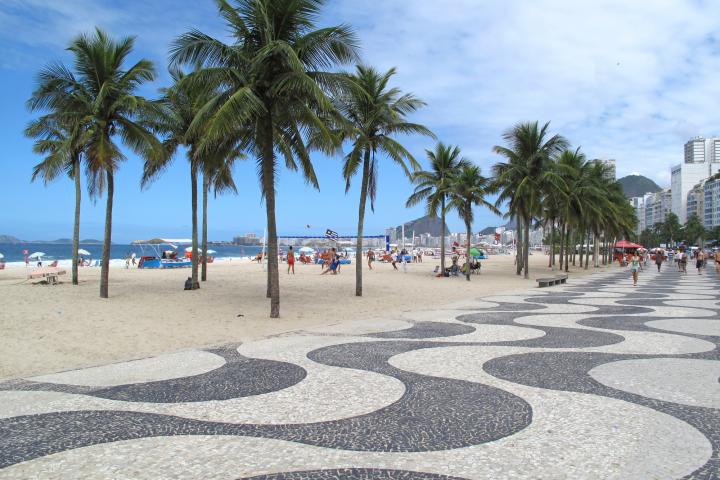 Las similitudes se encuentran en más de seis millones de teselas que dibujan el mosaico que hay en el suelo del paseo. Este tiene forma de olas, muy similares a las que hay en la vía brasileña, pero de tres colores: rojo, blanco y azul.