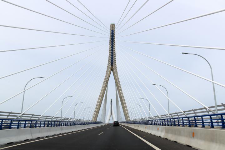 Por otro lado, el Ministerio de Transportes señala que el gálibo vertical bajo del tablero del puente, que es la distancia entre la parte inferior del tablero y el mar, "es también excepcional". En cifras, es de 69 metros. De esta manera, se permite el paso a las grandes embarcaciones.