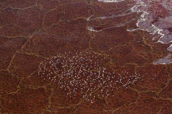 De hecho, el único ser vivo que habita en este lago es el culpable del color que tiene. Son unas algas de color rojo. Asimismo, a su alrededor suele haber multitud de flamencos. Estos , gracias a su pico que tiene la capacidad de filtrar el agua, pueden consumir dichas algas.