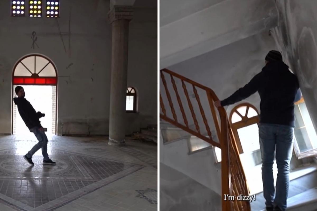 La inclinación del sitio se puede observar en la siguiente publicación, donde un joven muestra a cámara cómo es caminar por el interior de esta pequeña iglesia situada en Grecia.
