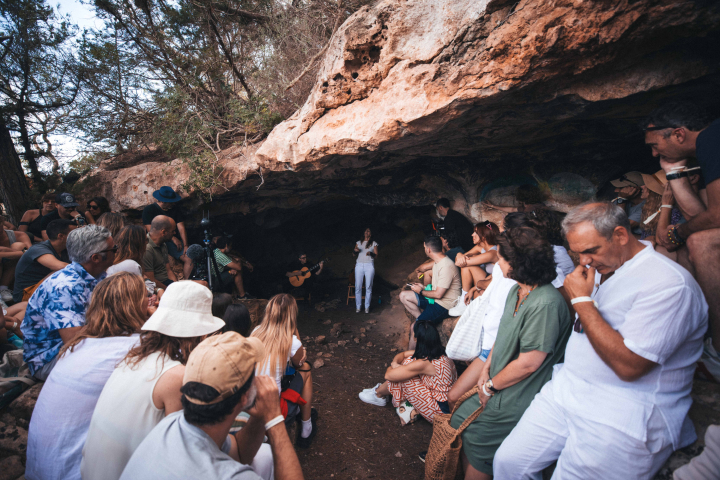 Cada una de estas rutas, además de la concienciación con el medio ambiente incluye con conciertos en enclaves únicos como el que ofreció el pasado sábado Tulsa en una cueva del Camí de Sa Pujada, una ruta que recorre desde el Pilar de la Mola hasta Es Caló. Allí en un completo rodeada de sabinas y pinos, en acústico sonaron temas de su último disco Amadora, como Melocotón o Cuando venga el león pálido, pero también otros más conocidos por el público como Seguramente me lo merezco.
