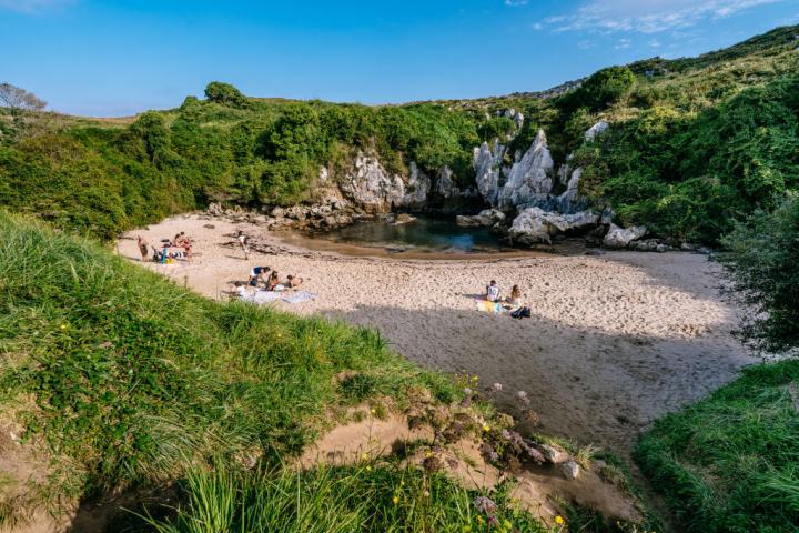 En concreto, es la playa de Gulpiyuri, a pocos kilómetros de Langre. Este curioso arenal se originó por la erosión del mar Cantábrico en los acantilados de la zona que terminó creando esta especie de piscina que todavía no es muy popular entre los turistas.