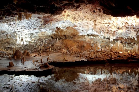 Concretamente, el espacio, de forma ovalada es de alrededor de cinco metros cuadrados y está rodeado de bloques de piedra y estalagmitas. Además, existe una estructura de palos y pieles junto a una de las paredes de esta cueva.