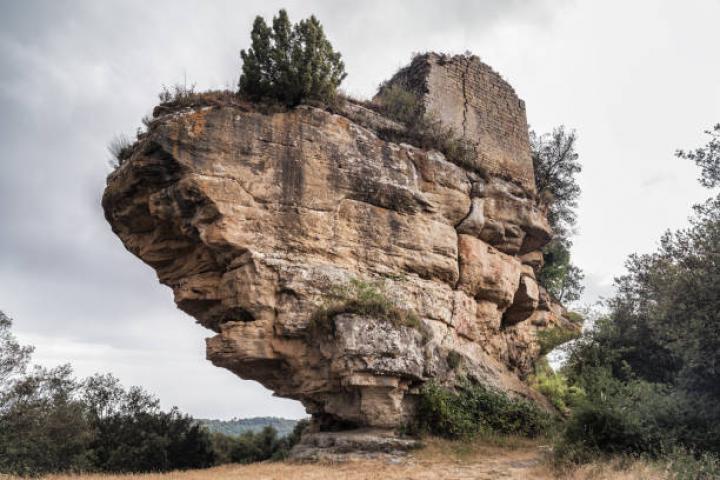 Estamos hablando del castillo de Castellcir, una joya histórica que se erige sobre una peculiar roca. Sí, como lo lees. No se trata ni de una montaña ni de una colina, sino que es una formación rocosa lo que sustenta esta fortaleza. Además, esta roca tiene una forma especial, ya que parece un barco en mitad del bosque, así como las ruinas en la cima se asemejan a la cabina del capitán. De hecho, por su peculiar ubicación esta estructura se conoce como el castillo de popa.