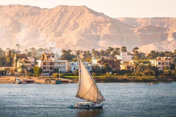 Esta escultural casa está situada a pie de playa en una isla, concretamente dentro de un complejo residencial, y permite tener unas grandes vistas al Nilo.