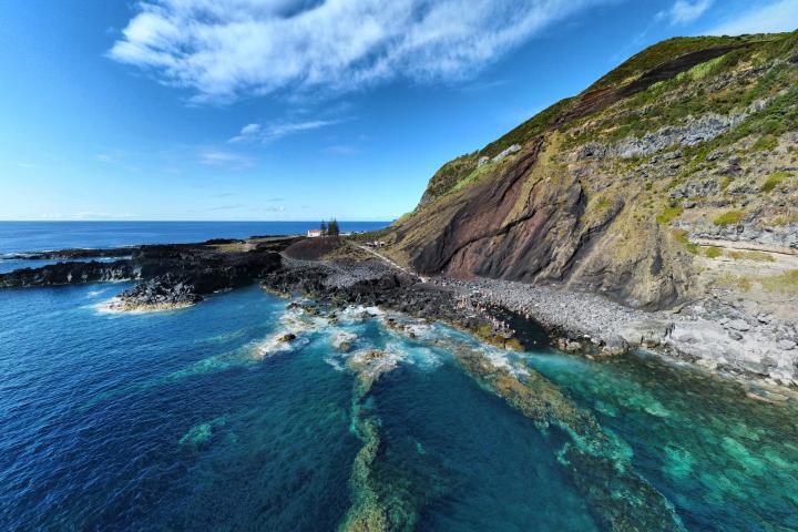 "El pseudocráter de Ferraria se formó hace mucho tiempo cuando la lava caliente fluyó sobre el mar, provocando explosiones de vapor. Este fenómeno vulcanológico entre la existencia de dos fuentes termales es el motor de la temperatura del océano", señalan en la web turística de Azores, Futurismo.