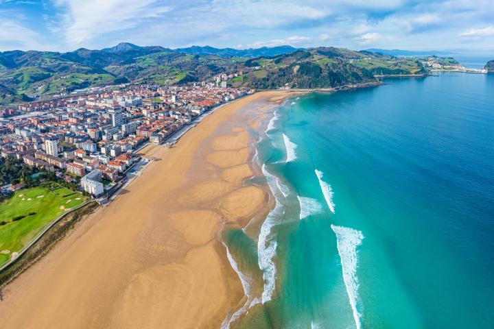 La playa de Zarautz, en la localidad del mismo nombre y en la zona oriental de la conocida como Kosta Urola, cuenta con más de 2,5 kilómetros de longitud, siendo la más larga de la costa de Euskadi. "Este tramo de costa de la provincia de Gipuzkoa es famoso por sus espectaculares playas, sus pueblos pesqueros y su txakoli, un vino blanco espumoso local", señalan en la publicación.
