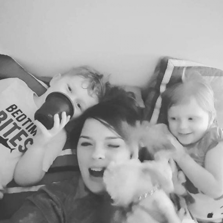 No he podido resistirme. Me he subido a la cama de Deacon, me he tumbado entre mis dos hijos y nos hemos arropado con su colcha de dibujos que con tanta generosidad nos han regalado. Nadie estaba viendo los dibujos, pero todos nos estábamos riendo. El perro también ha subido a la cama y se ha unido a nosotros. Ahí estábamos los cuatro acurrucados -una familia al completo, no por lo que dictan los estándares sociales, sino porque el amor que nos une es más fuerte que los estereotipos- y en ese momento he decidido que nos hiciéramos una foto. Y este ha sido el resultado: