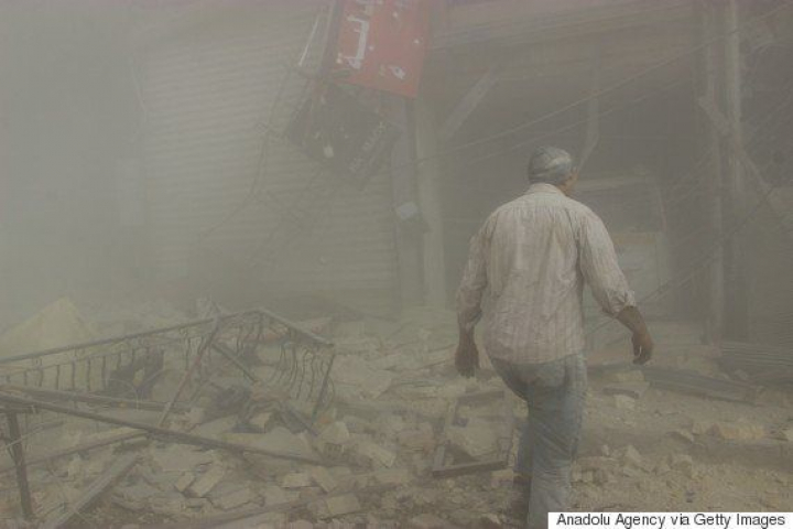 Un sirio camina entre restos de edificios destruidos por los ataques aéreos rusos en Alepo (Siria) el 18 de febrero de 2016.