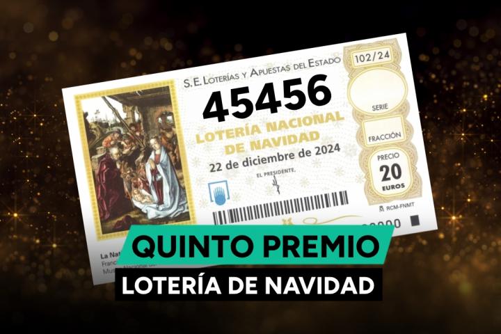 El cuarto quinto premio de la Lotería de Navidad 2024, premiado con 6.000 euros al décimo, es el 45.456.