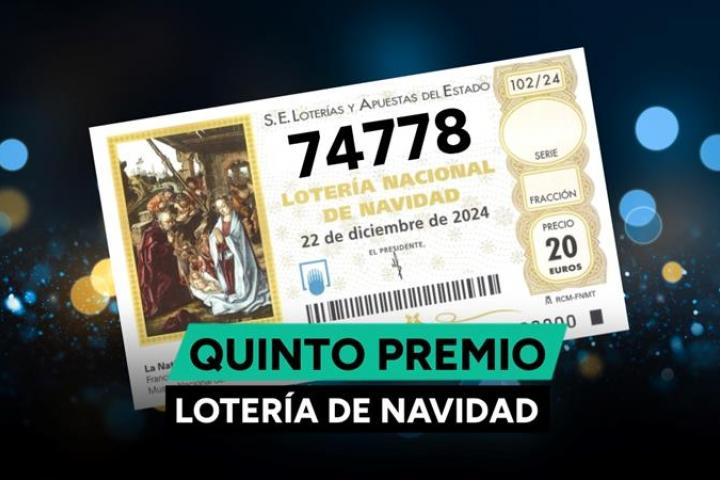 El tercer quinto premio de la Lotería de Navidad de 2024 ha sido para el número 74.778. Este premio está dotado con 60.000 euros por serie, es decir, 6.000 euros por décimo.