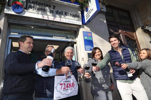El propietario de la administración, Ángel Alda, ha dicho estar "desbordado" y "algo asustados" al conocer que había repartido tanta fortuna. La gente se ha acercado a esta céntrica y popular administración logroñesa para brindar con vino de Rioja por este premio.