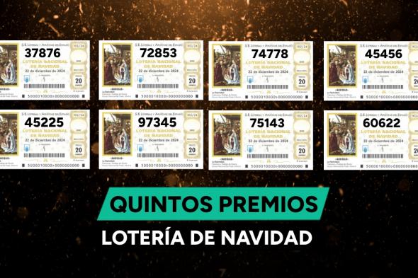 Comprueba los quintos premios del Sorteo Extraordinario de Lotería de Navidad 2024.