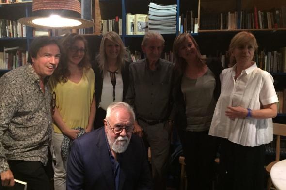 Lucía Tello acompañada de grandes amigos y cineastas, como Gonzalo Suárez (abajo) en la Librería 8 & ½ durante la presentación del libro