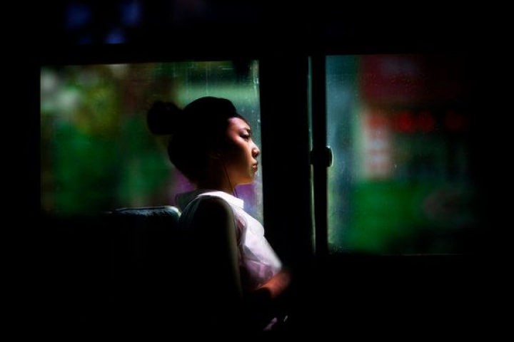 A esa estirpe de fotógrafos francotiradores, viscerales, arriesgados y de mirada rápida y certera pertenece Billy Gomez. Se ha convertido en un testigo creativo y activo de las calles de Seúl. Sus habitantes son el motor de su obra, con sus prisas, rutinas, abatimientos y soledades grabadas en el rostro. El metro, el tren o las calles son sus escenarios habituales. Como en esta imagen, las personas que fotografía están solas, abstraídas, y con expresión de derrota, como si estuvieran presos de una vida que no es la que habían soñado. Miran por las ventanas para escapar con la imaginación, pero lo que ven a través del cristal son otros seres solitarios y perdidos como ellos.
