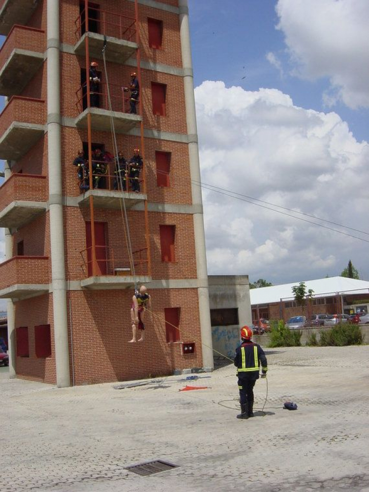 Bomberos practicando técnicas de rescate en altura. Foto: Bomberos CM.
