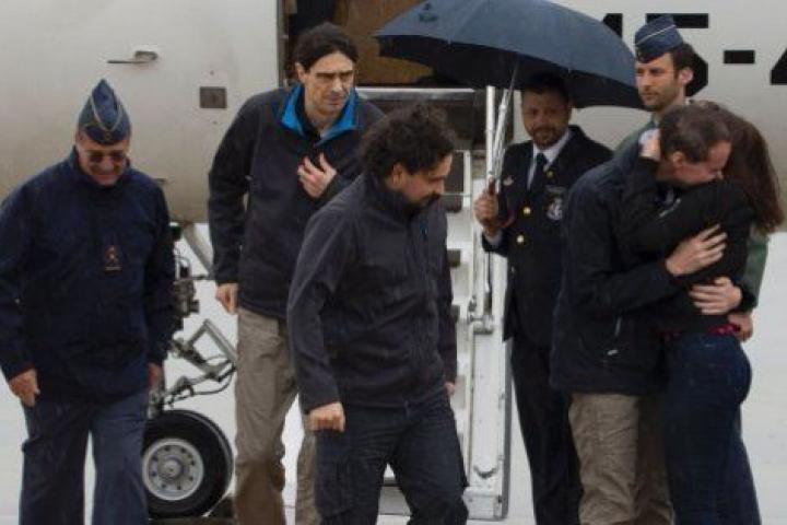 Hoy es un día grande para Reporteros Sin Fronteras. Un día feliz. Tras 10 meses de secuestro en Siria, nuestros compañeros, los periodistas Antonio Pampliega, Ángel Sastre y José Manuel López, han regresado a casa. Un poco desmejorados, según las imágenes, pero parece que en buenas condiciones.