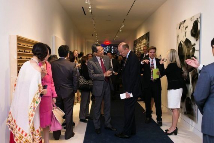 El recibimiento estuvo a cargo del jazz inconfundible de Ruby Choi, complementado por canapés entre los que no faltaron el kimchi o el maki-sushi, regados por el que a la postre sería una de las estrellas de la noche: el saketeani, cocktail a base de exclusivo sake Ozeki japonés y té de ciruela coreano. La noche transcurrió entre diplomáticos e inversores de Wall Street en corros, deambulando por las galerías, y en varias suertes de besamanos. Si en su Diplomacia, Kissinger definía a la diplomacia como al arte de contener al poder -y esto, a ningún diplomático se le escapa-, la diplomacia cultural es su eje central; pues la emoción y el entendimiento de los pueblos, es bien sabido que embrida el egoísmo de sus gobernantes. Kate Shin nos lo dijo abiertamente: "Usando la ley, el sistema o las regulaciones se pueden hacer cosas, pero estás forzando a la gente, y no es natural. Pero con el arte puedes cambiar las percepciones de la gente en una noche, porque interactúa directamente con sus emociones."