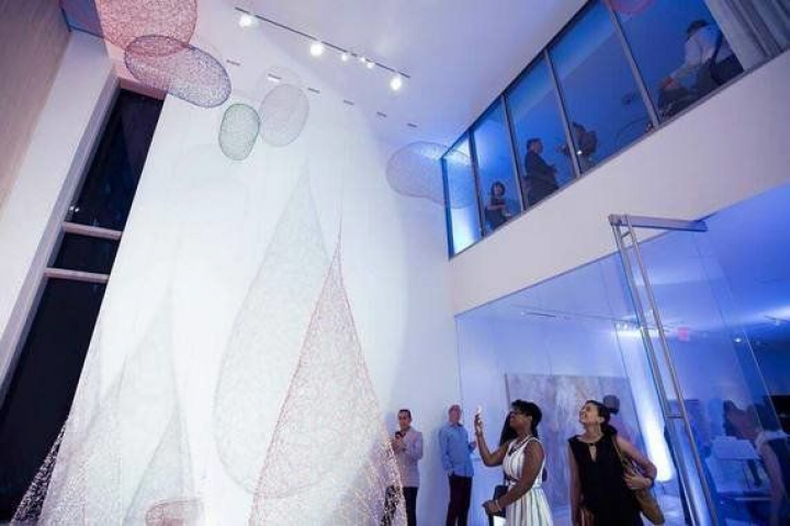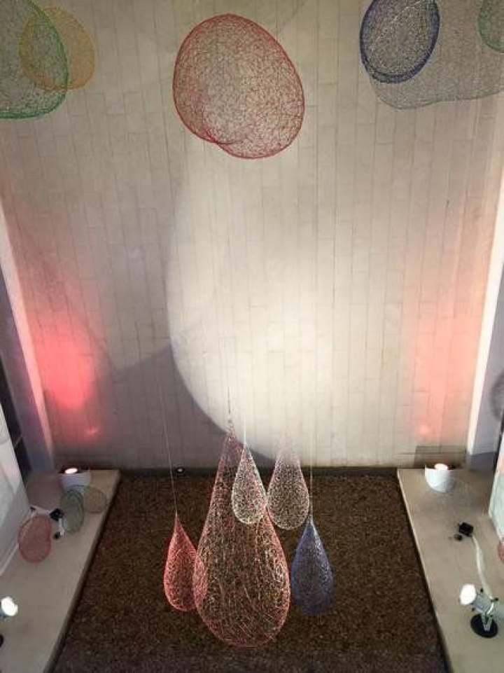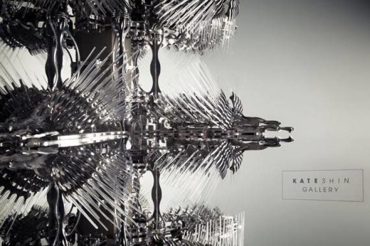 Aunque les pueda resultar extraño, la autoría de este amigable encuentro entre la gran península y el archipiélago del sol naciente, no recae en alguna institución, o en la labor de responsabilidad social de alguna gran corporación interesada, sino en la generosa disposición de una sola mujer: Kate Shin. Emprendedora dinámica y prolífica, hacia 2014 fundó la Kate Shin Gallery en la espectacular Waterfall Mansion, en el zona noble de la isla de Manhattan, como una combinación pionera de arte y estilo de vida. A lo alto y ancho de las siete plantas de la mansión de la cascada (porque de hecho alberga la cascada privada más grande de Nueva York) Kate Shin se propuso montar una exposición para celebrar el 70 aniversario de la independencia de Corea, invitando a artistas coreanos vanguardistas y de fama internacional como Lee Jaehyo, galardonado con el Gran Premio de la Trienal de Osaka (Japón) por sus esferas y grandes figuras orgánicas formadas por troncos simétricamente pulidos de los que pudimos disfrutar a gran escala, o Jae Yong Kim, que ha expuesto sus divertidas colecciones de donuts cerámicos tanto en Japón como en Corea y, abundantemente, en las mejores galerías de los Estados Unidos.
