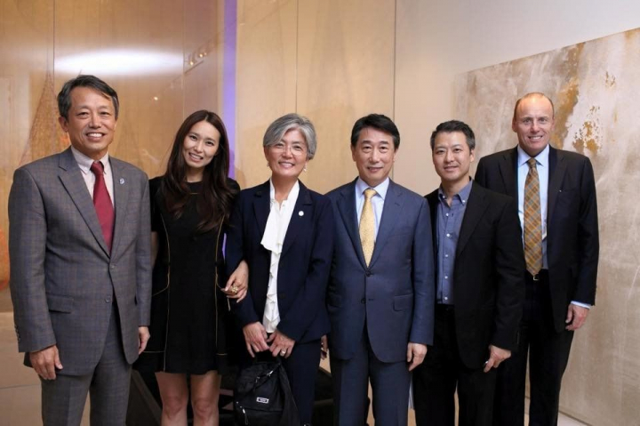 De izquierda a derecha: subsecretario general de las Naciones Unidas Kim Won-soo, Kate Shin dueña de la Waterfall Mansion, asistente del secretario general de las Naciones Unidas Kyung-wha Kang, embajador de Corea ante las Naciones Unidas Oh Joon, director de comunicación de la Waterfall Mansion David Chang, y Peter Yeo vicepresidente de la UN Foundation