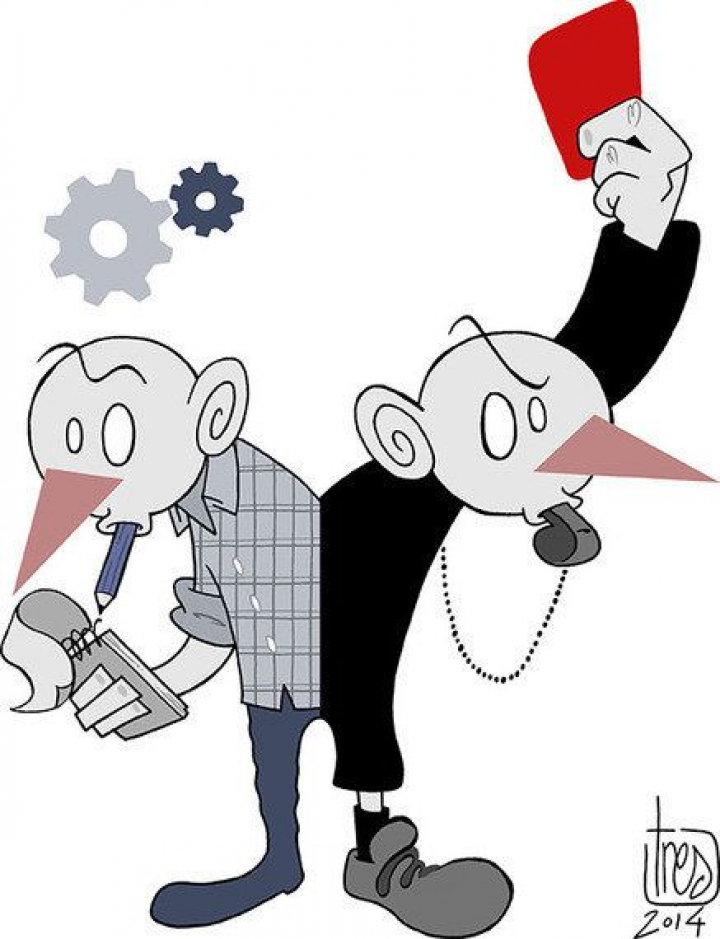 Periodista y árbitro no son muy diferentes en cuanto al trato con sus fuentes. Ambos deben estar formados para lidiar con ellas -y así poder, por ejemplo, distinguir las creíbles de las no creíbles-, escucharlas debidamente, tomar nota de lo que dicen, y acabar publicando una redacción pública sobre lo que les han transmitido.