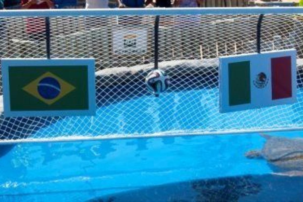 - Si en Sudáfrica fue el pulpo Paul el encargado de pronosticar los resultados de los partidos de la manera más rocambolesca (desde su acuario), en esta ocasión toma el relevo una de las tortugas de la reserva del proyecto Tamar, un centro de protección de tortugas situado en Praia do Forte (Bahía). Esta tortuga cabezuda (cabeção) ya acertó el resultado del partido inicial. El procedimiento es el siguiente: se le ofrecen tres sardinas, cada una de ellas situada bajo la bandera de cada equipo o bajo un balón, y en función de cuál escoge, se prevé un resultado u otro. Ha vuelto a decantarse, de cara al partido que enfrentará mañana a Brasil contra México. Curiosamente, lo ha hecho el día internacional de la tortuga marina.