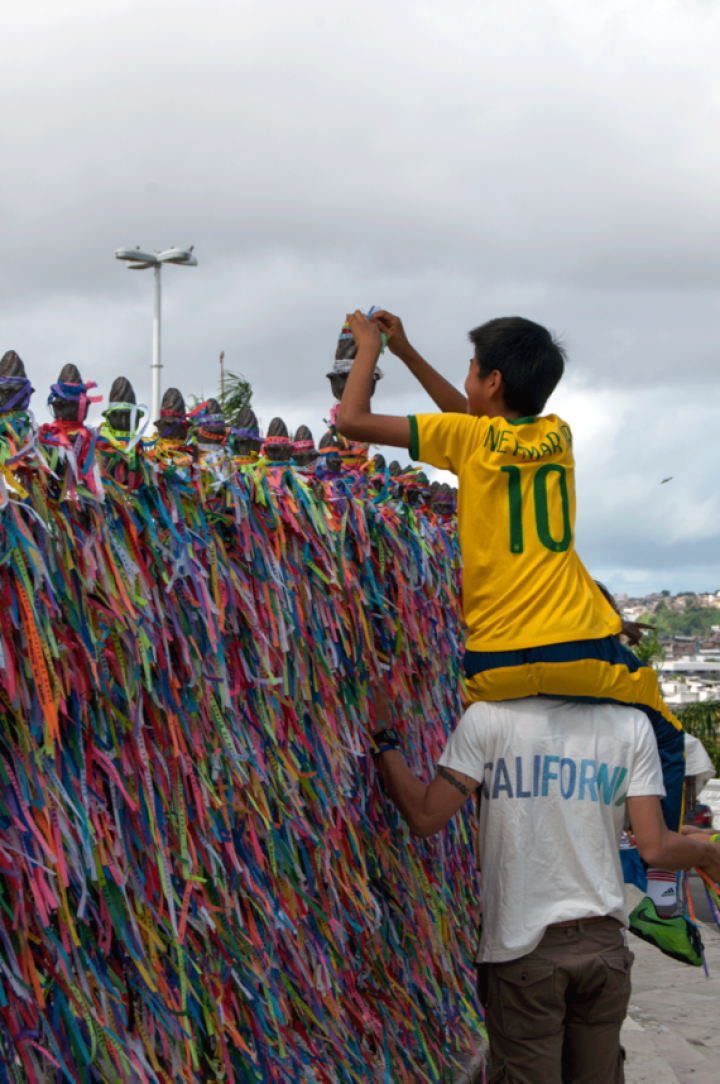 - Una de los elementos siempre presentes en las competiciones deportivas son las supersticiones y los ritos religiosos. Más allá de santiguarse en el terreno de juego o de implorar al cielo la gracia sobre el césped, en Salvador de Bahía cientos de visitantes acuden a la iglesia de Nuestro Señor de Bonfim. La leyenda dice que hay que atar una cinta (uma fita) en la reja de la puerta y pedir un deseo. Estos días, la iglesia se llena de aficionados al fútbol que piden al Señor de Bonfim éxitos deportivos para sus equipos.
