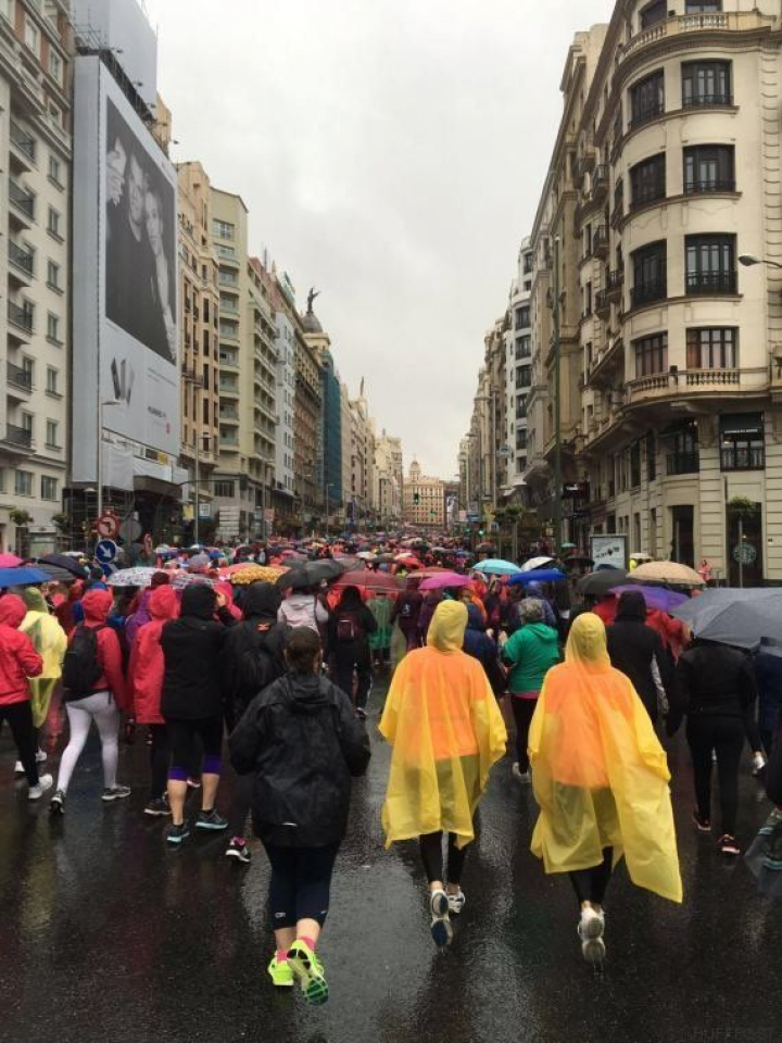 Yo fui una de esas a las que le sonó el despertador a las 7 en punto y que al desperezarse descubrió el chaparrón. Daban ganas de quedarse en la cama, pero había quedado con otras 31.999 mujeres -incluidas tres compañeras de trabajo, más una allegada- a las que tampoco frenó la lluvia.