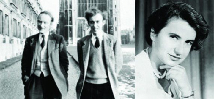 Crick, Watson y Rosalind, de izquierda a derecha. Fuentes: http://www.dnaftb.org/19/gallery.html; https://en.wikipedia.org/wiki/Rosalind_Franklin