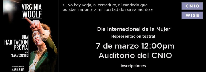 El 8 de marzo, celebramos en el CNIO el Día de la Mujer con la representación de Una habitación propia, el ensayo que Woolf escribió sobre mujeres y literatura pero que se puede extrapolar a todas las mujeres profesionales. La adaptación al teatro es una obra maestra de la escritora María Ruiz. La interpretación por parte de Clara Sanchís no es menos soberbia. He leído casi todo de Virginia Woolf, hasta sus diarios completos, y Clara Sanchís es una encarnación perfecta de esa Virginia Woolf que vislumbramos a través de sus palabras escritas. Conforme transcurre la obra, Virginia se reencarna en Clara y Clara en Virginia. Están todos y todas invitados a venir a ver esta obra el 7 de Marzo en el CNIO, reclamando no solo "una habitación propia", sino también "un laboratorio propio" :