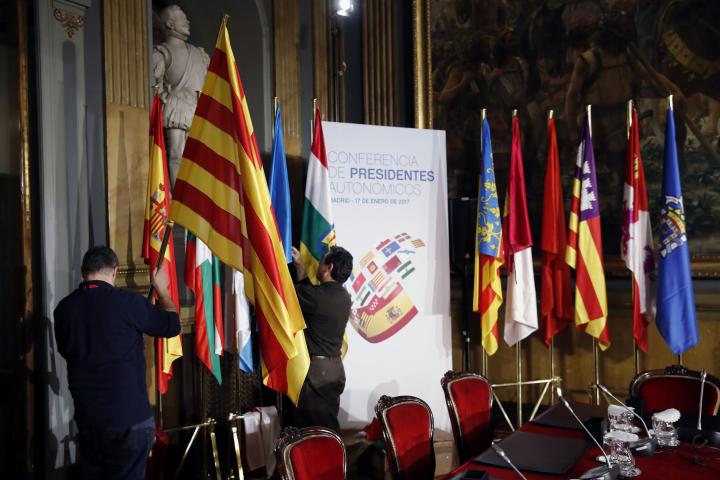Preparativos en el Senado, ayer lunes, para la Conferencia de Presidentes autonómicos.