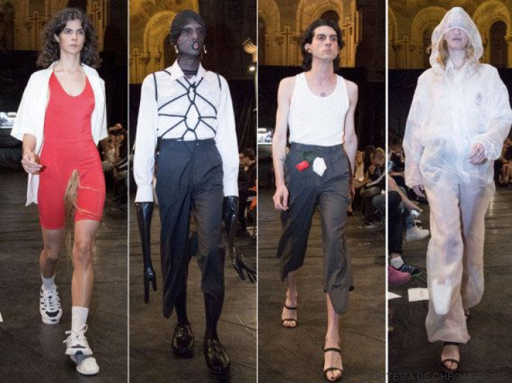 Más para insiders y colegas ha sido la segunda cita, la del jueves: el loco desfile de Chromosome --dúo formado por Rafa y Espe-- lleno de prendas que pocos supieron/supimos descifrar. Todo era moderno, que de eso se trataba: en una capilla de un colegio cubierta de plástico negro paseaba ropa entre lo simple y lo vintage, poco maquillaje, referencias indistinguibles (con toques al primer Davidelfín o a Margiela) y abuelos sentados en primera fila que los diseñadores encontraron mediante anuncios en paradas de autobús (motivo: "los abuelos son guays". Y ya).