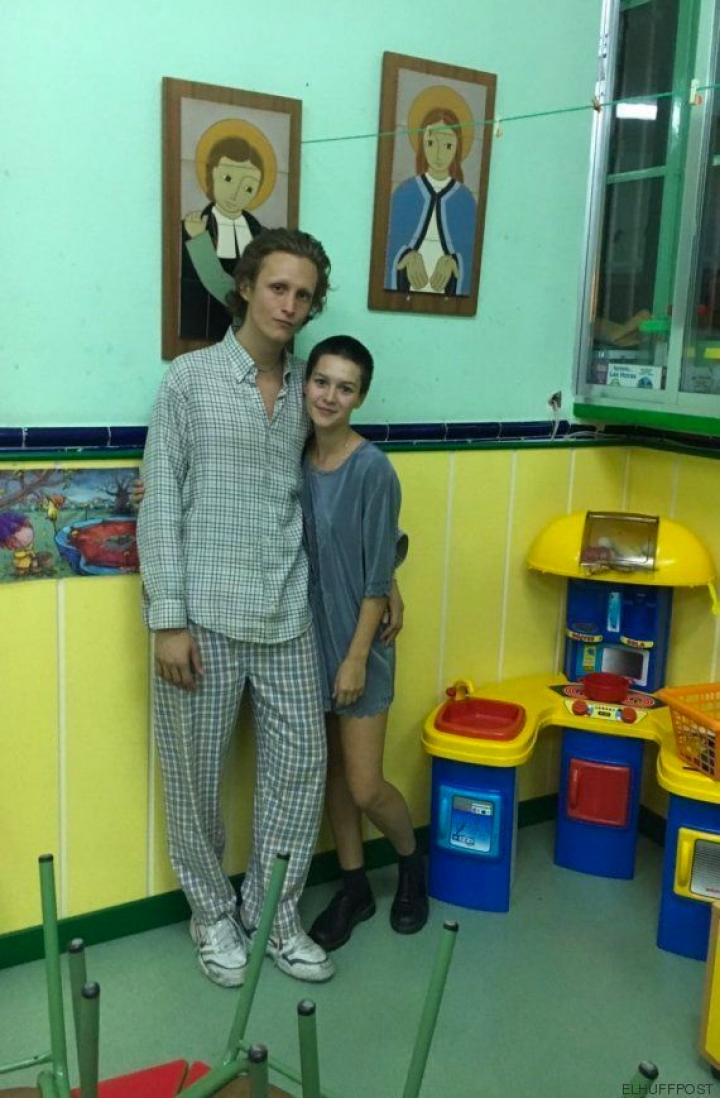 Espe y Rafa, creadores de Chromosome, en una de las aulas del colegio en el que organizaron su desfile.