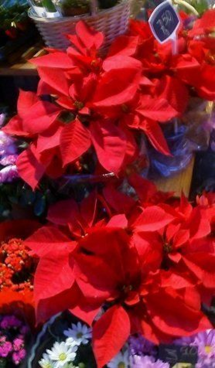 Las flores de Pascua en el puesto de flores de mi amiga Carmen (Azul Lavanda) en la calle Ibiza, 70, me dicen que estamos en Navidad.