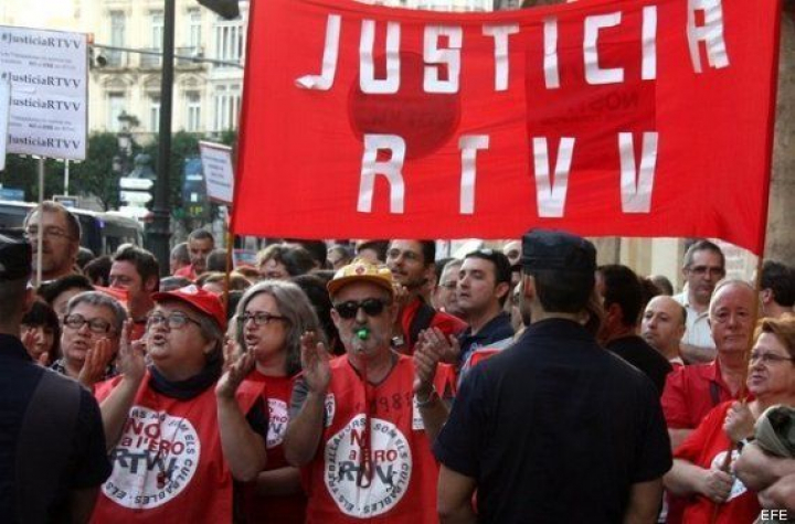 Manifestación de trabajadores contra el ERE en RTVV. Foto: EFE.