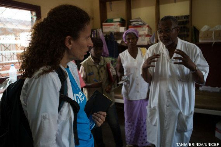 El doctor Gody, médico del único hospital pediátrico de República Centroafricana, me explica el trabajo que están desarrollando para salvar la vida de los niños que sufren desnutrición infantil, agravada por el conflicto que vive el país desde finales del pasado año. FOTO: ©UNICEF/ Tanya Bindra