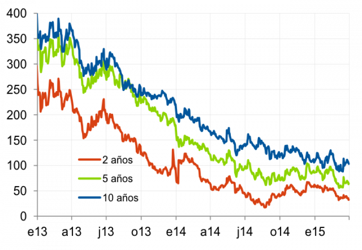 Gráfico 2. Prima de riesgo de España frente a Alemania a varios plazos