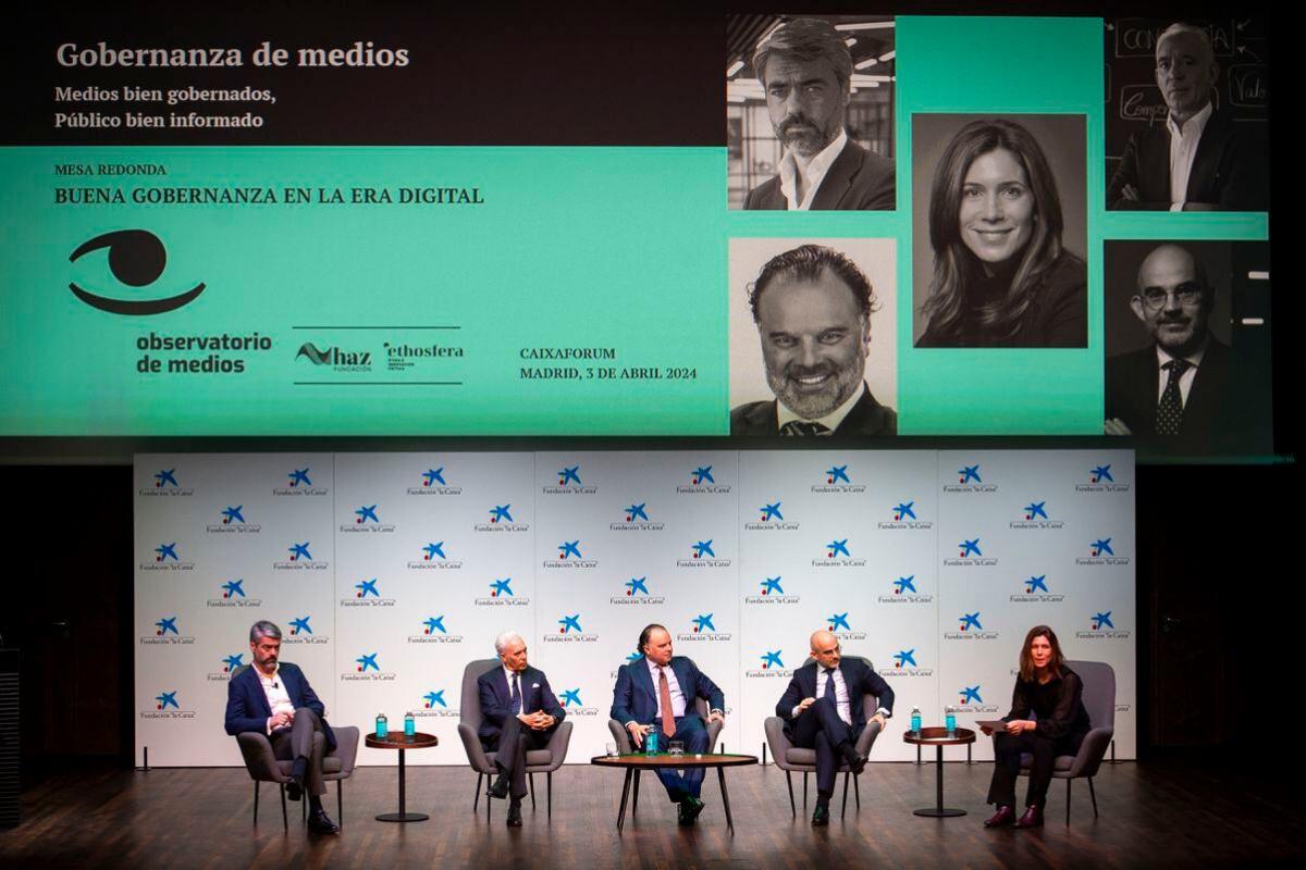 En la conversación sobre los medios de comunicación también participaron Luis Enríquez, CEO del Grupo Vocento; Fernando de Yarza, presidente de Henneo; y José Antonio Sánchez, fundador y editor de El confidencial. Elena Herrero-Beaumont, directora de Ethosfera y codirectora del Observatorio de Medios, moderó esta mesa redonda en la que se ahondó en la relación entre la gobernanza de los medios y el fortalecimiento de la confianza en el sector. Los ponentes dialogaron sobre los riesgos que afectan a la credibilidad e independencia de los medios y cómo gestionarlos para cumplir con los valores y la función del periodismo. “No somos propietarios de nada, sino responsables de la gestión de una institución”, sostuvo De Yarza.