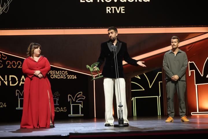 'La Revuelta' de David Broncano también ha acaparado gran parte de la atención de la noche por su prematuro galardón. El espacio tan solo había emitido 28 programas cuando fue premiado al mejor programa de entretenimiento. Broncano ha subido acompañado de Lalachus y Grison para recoger el galardón. El humorista no ha querido desperdiciar la ocasión para dejar un recado a los 'haters' del programa y agradecer a RTVE la oportunidad: "Gracias a TVE por creer que un programa como el nuestro tenía oportunidad en la tele pública, yendo en contra de la opinión de gente que decía que era un encargo político".