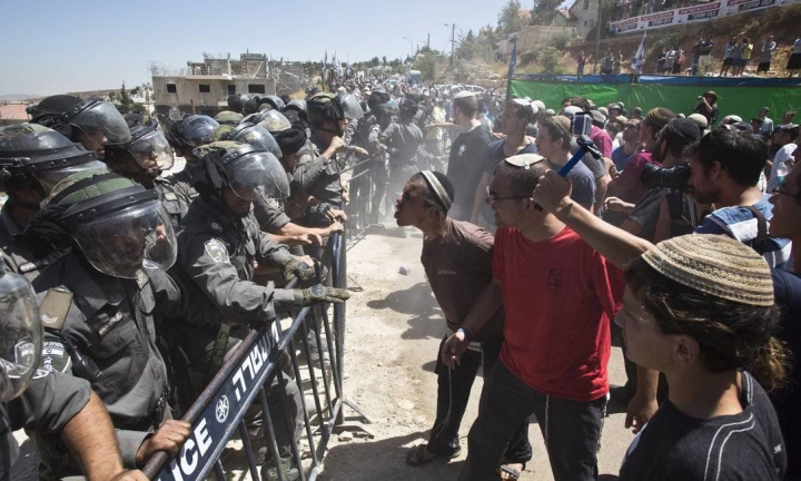 Colonos judíos se enfrentan a las fuerzas de seguridad israelíes en el asentamiento de Beit El, en Cisjordania./REUTERS