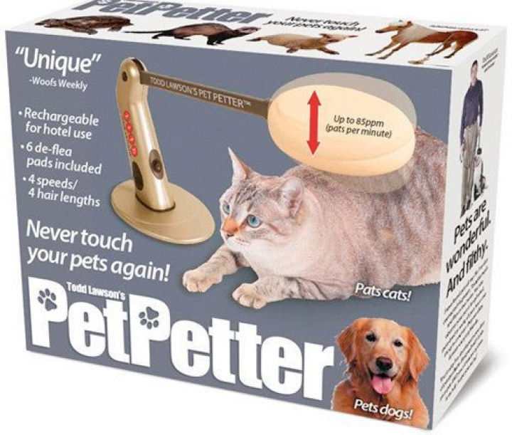 Hay quien ha dedicado tiempo y esfuerzo a crear el Pet Petter, un artilugio mecánico que promete acariciar por ti a tu mascota, hasta 85 carantoñas por minuto, para que nunca tengas que volver a tocarla.