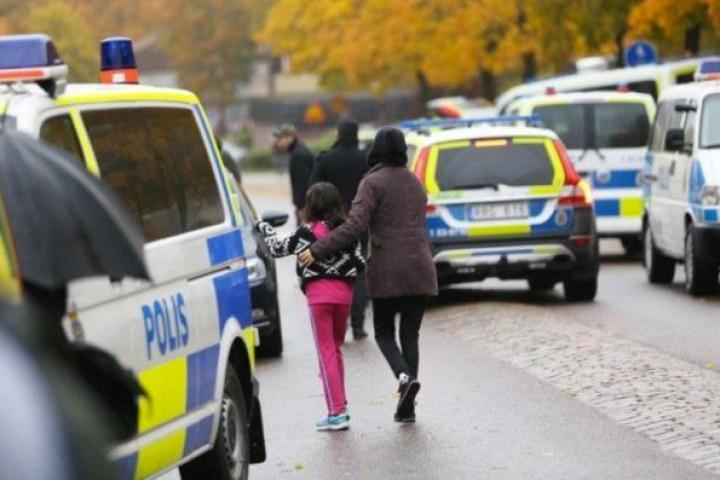 Una estudiante abandona con su madre su escuela, en un pueblo de Suecia, después de que el lugar fuera asaltado por un individuo con un arma blanca/AFP