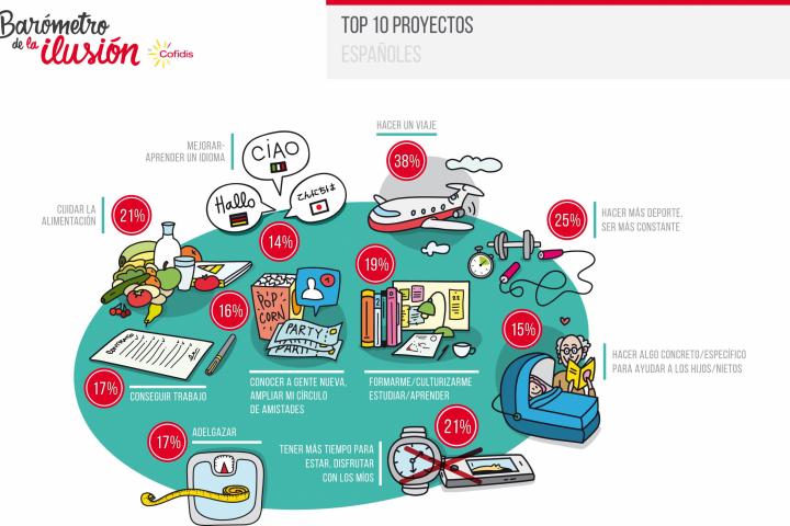 ¿Quiere saber qué más proyectos nos ilusionan a los españoles? Aprender un idioma, seguir formándonos, conseguir un trabajo... ¿Conseguir un trabajo? Bueno, no hay que tomárselo todo al pie de la letra. Después de todo, el inglés no es tan difícil, y aprender cosas nuevas siempre está bien, aunque sea para fardar en la partida con los amigos. Lo de buscar trabajo creo que vamos a dejarlo de lado, que usted ya ha trabajado demasiado.