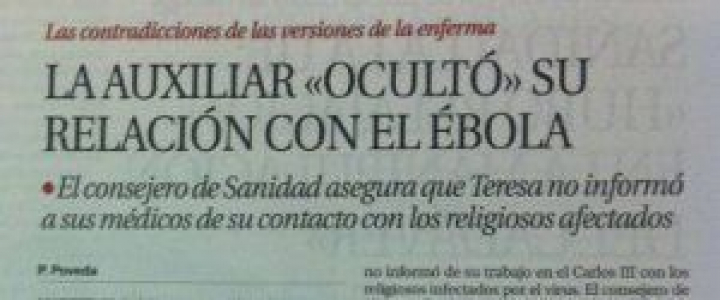 Este es el mensaje que recibió la ambulancia convencional -que no está equipada para enfermos contagiosos- del SUMMA que a las 7 de la mañana del pasado lunes recogió a Teresa Romero en su domicilio para trasladarla al Hospital de Alcorcón. Como cuenta hoy Vicente G. Olaya en El País, el conductor y el camillero, extrañados por el mensaje, pidieron aclaraciones a la central, pero les comunicaron que el médico de urgencias había descartado el virus. El camillero, aún así, se puso guantes, mascarilla y una bata de papel. Después de dejar a Teresa, volvieron a reclamar más información, que no llegó hasta 12 horas después. Siguieron trabajando, y atendieron siete pacientes más.