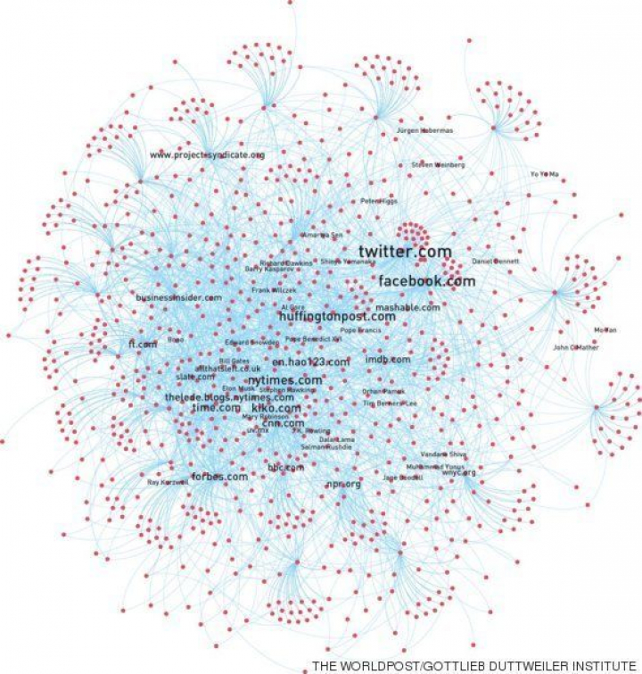Todos los años, el WorldPost colabora con el Instituto Gottlieb Duttweiler de Zúrich y el investigador del Instituto Tecnológico de Massachusetts Peter Gloor para determinar qué pensadores y plataformas han sido más influyentes en el universo digital global. Por primera vez, este año se han analizado los contenidos web en árabe igual que se hace con los contenidos en inglés, en español, en alemán y en chino.