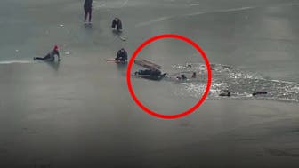La policía de la ciudad ucraniana de Dnipro no perdió ni un minuto cuando recibieron una llamada de auxilio: tres hombres y un adolescente cayeron dentro de un lago helado.