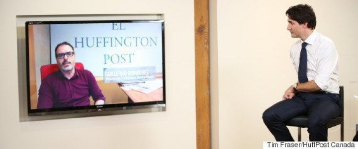 El primer ministro canadiense, Justin Trudeau, responde a la pregunta del subdirector de 'El Huffington Post' en la asamblea global que tuvo lugar en marzo.